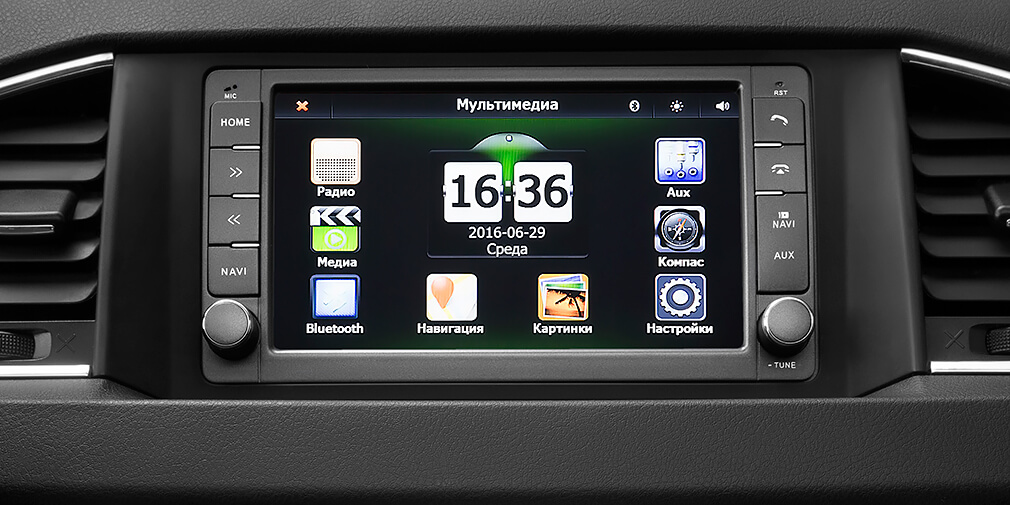 Передняя панель организована логичнее. Экран мультимедийной системы расположен на одном уровне с приборной панелью и меньше отвлекает от дороги. Блок управления новым климат-контролем также подняли повыше, а в основании консоли разместился кармашек под телефон. С молочно-белой подсветкой приборы и символы лучше читаются в темноте, но часть кнопок сохранила фирменный зеленый цвет. Клавиши стали короткоходными, а ручки вращаются с приятным плотным усилием.